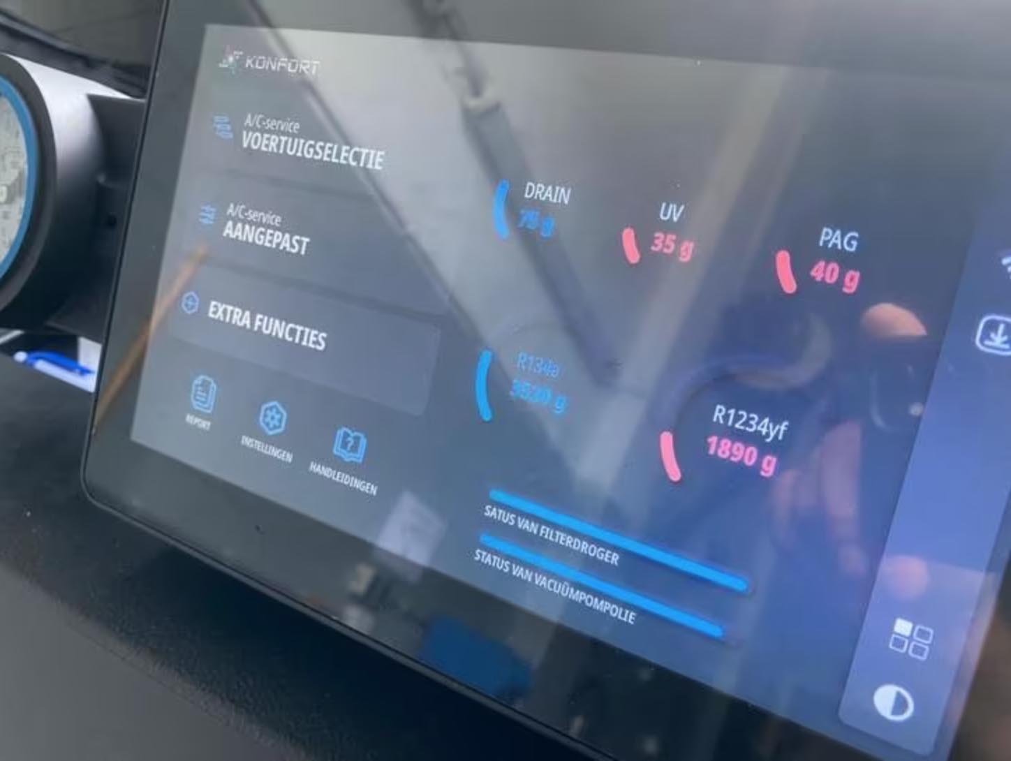 De meeste mensen denken dat je airco zomaar kan bijvullen, maar dat gaat helaas niet zo gemakkelijk als je het goed wilt doen. Als eerst verwijder je het oude koelmiddel volledig uit het aircosysteem. Ook moeten alle vocht uit de leidingen van het systeem verwijderd worden. Hierna checken we met een speciale systeemvloeistof op lekdichtheid van de installatie. Als alles goed is beginnen we pas met het bijvullen van het nieuwe koudemiddel. Na het bijvullen van de airco doen we de nacontrole. Hierbij wordt de volgende aspecten gecheckt: de druk, temperatuur en de beveiligingen van het aircosysteem.