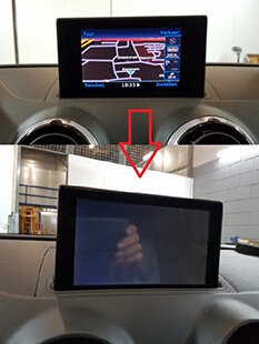Wanneer uw voertuig af-fabriek is voorzien van een beeldscherm, maar niet voorzien is van een navigatiesysteem, is het mogelijk om een toepassing te maken waarbij er een navigatiemodule wordt geïntegreerd in uw voertuig. Deze module monteren wij op het aanwezige beeldscherm en is bedienbaar met OEM Touchscreen of met een Touchglas die voor het scherm is gemonteerd. Zo blijft het uiterlijk er origineel uitzien en kan u toch probleemloos navigeren door heel Europa.
